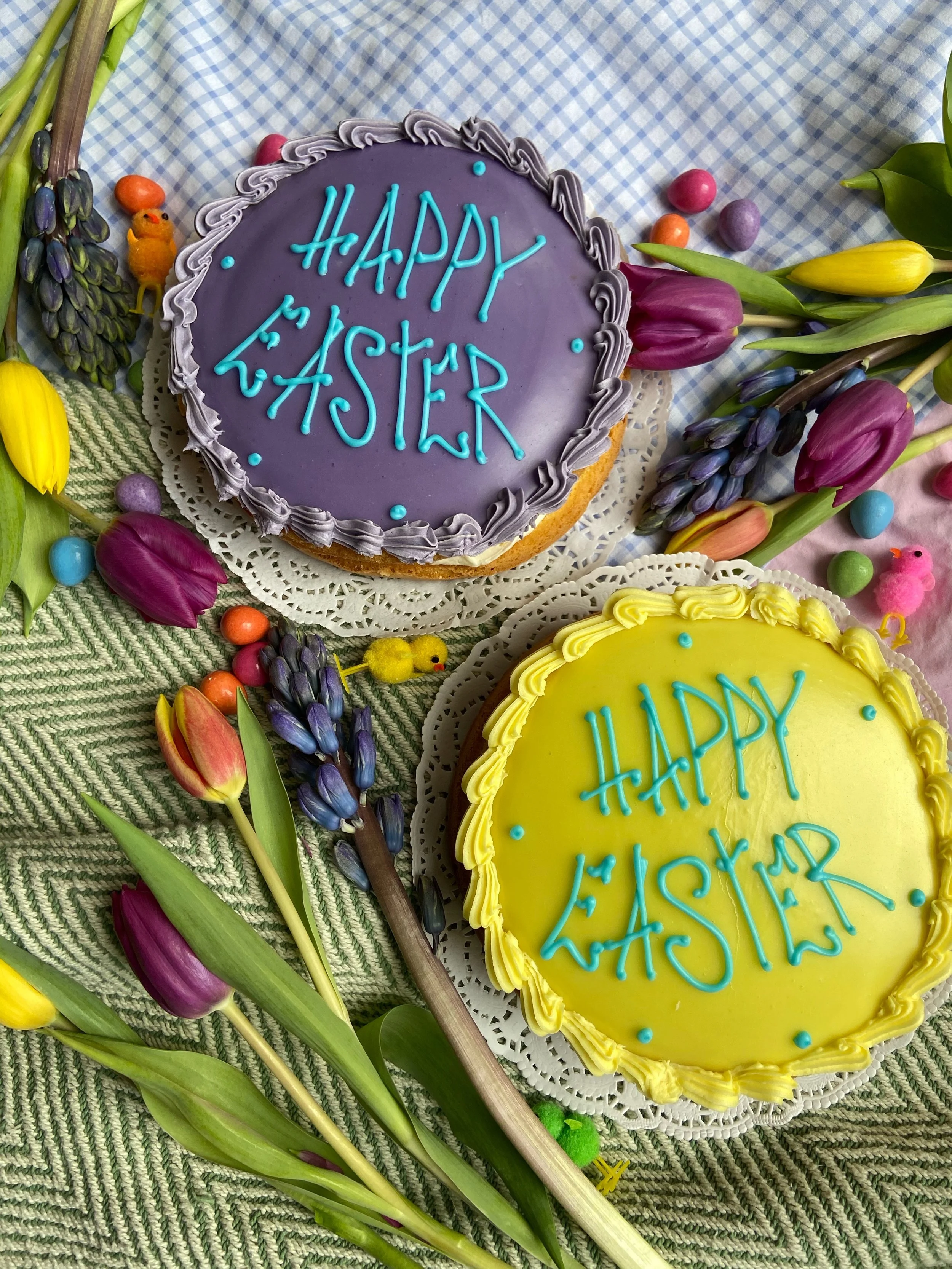 Image 1 of 2 Image 2 of 2 Easter Cake £7.00 The perfect cake for Easter 🐣 Serves: 4-6Flavour: Plain Sponge with buttercream and jam filling Pickup Date: Friday 3rd April Saturday 4th April Purchase Added! The perfect cake for Easter 🐣 Serves: 4-6Flavour: Plain Sponge with buttercream and jam filling